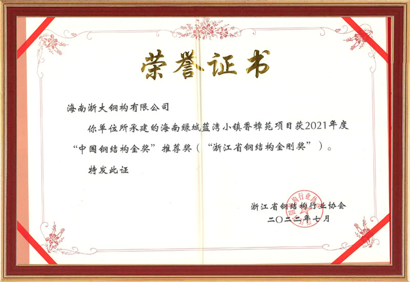 浙江省鋼結(jié)構(gòu)金剛獎(jiǎng)
